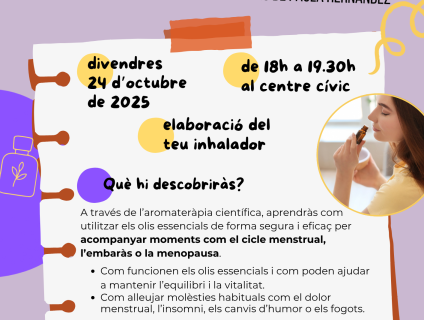 L'Associació de Dones organitza una xerrada-taller per redescobrir el benestar natural a través dels olis essencials, a càrrec de Paula Hernández.