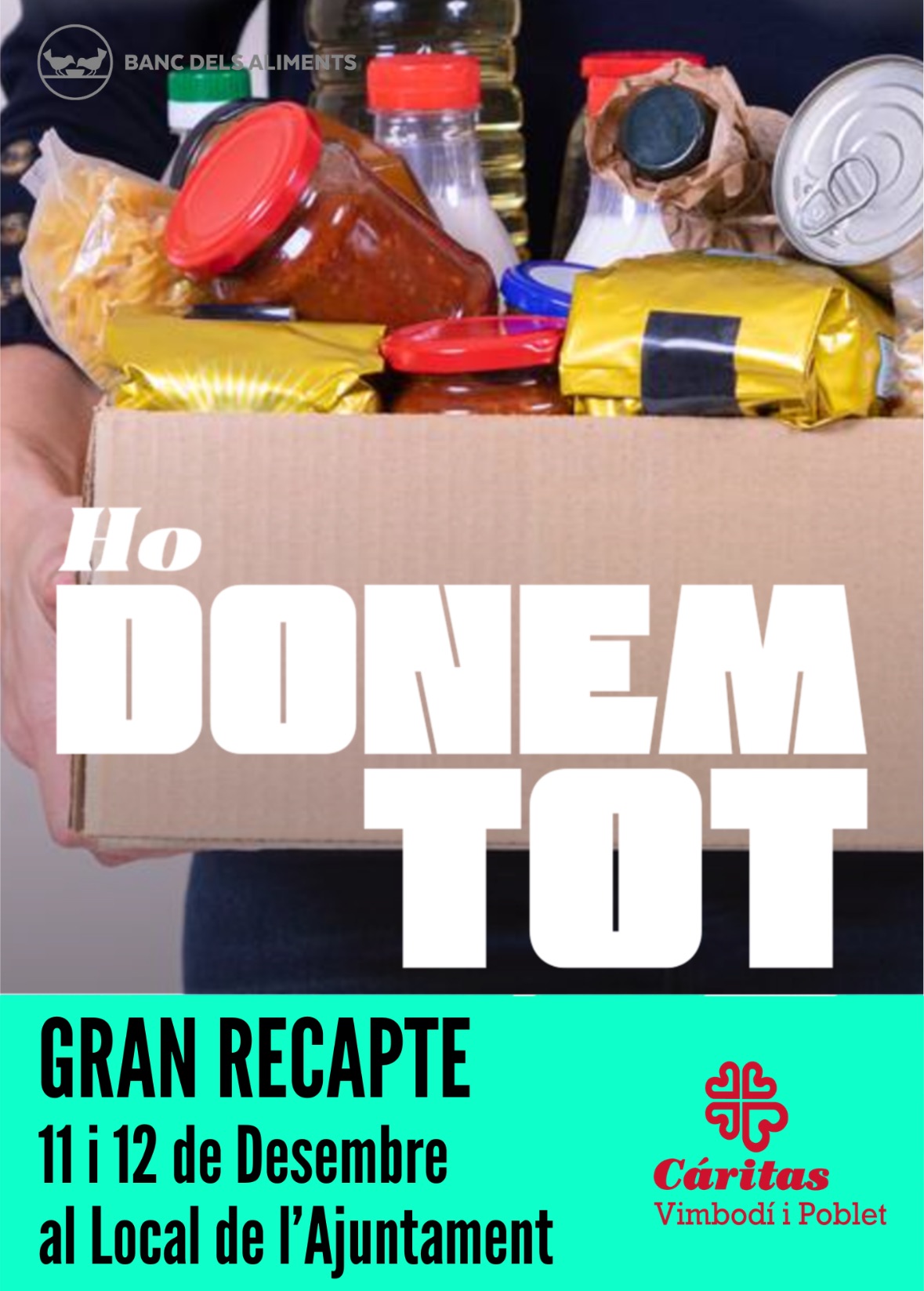 CÀRITAS DE VIMBODÍ I POBLET: GRAN RECAPTE D'ALIMENTS