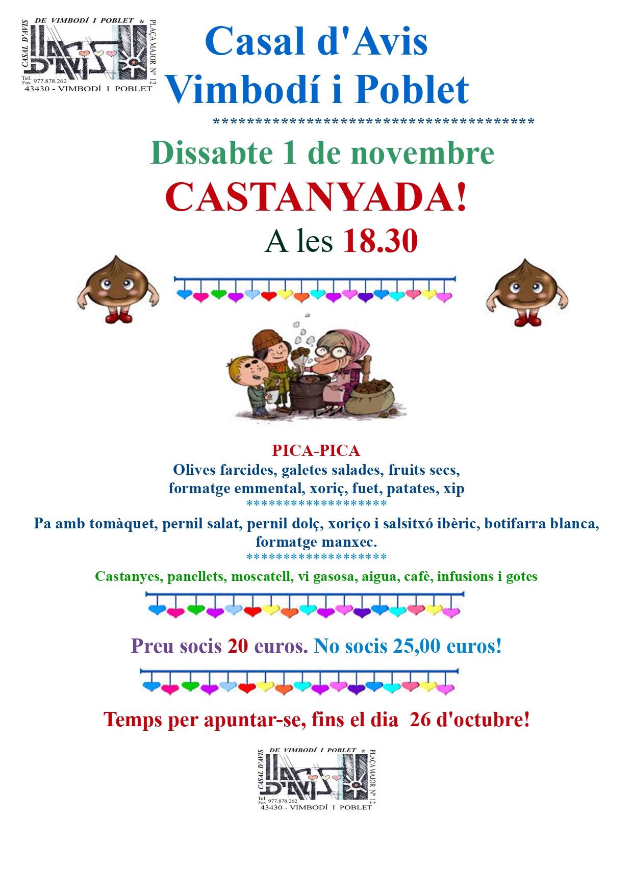 Viu la castanyada al Casal d’avis (Cal inscripció prèvia fins el dia 26 d’octubre).