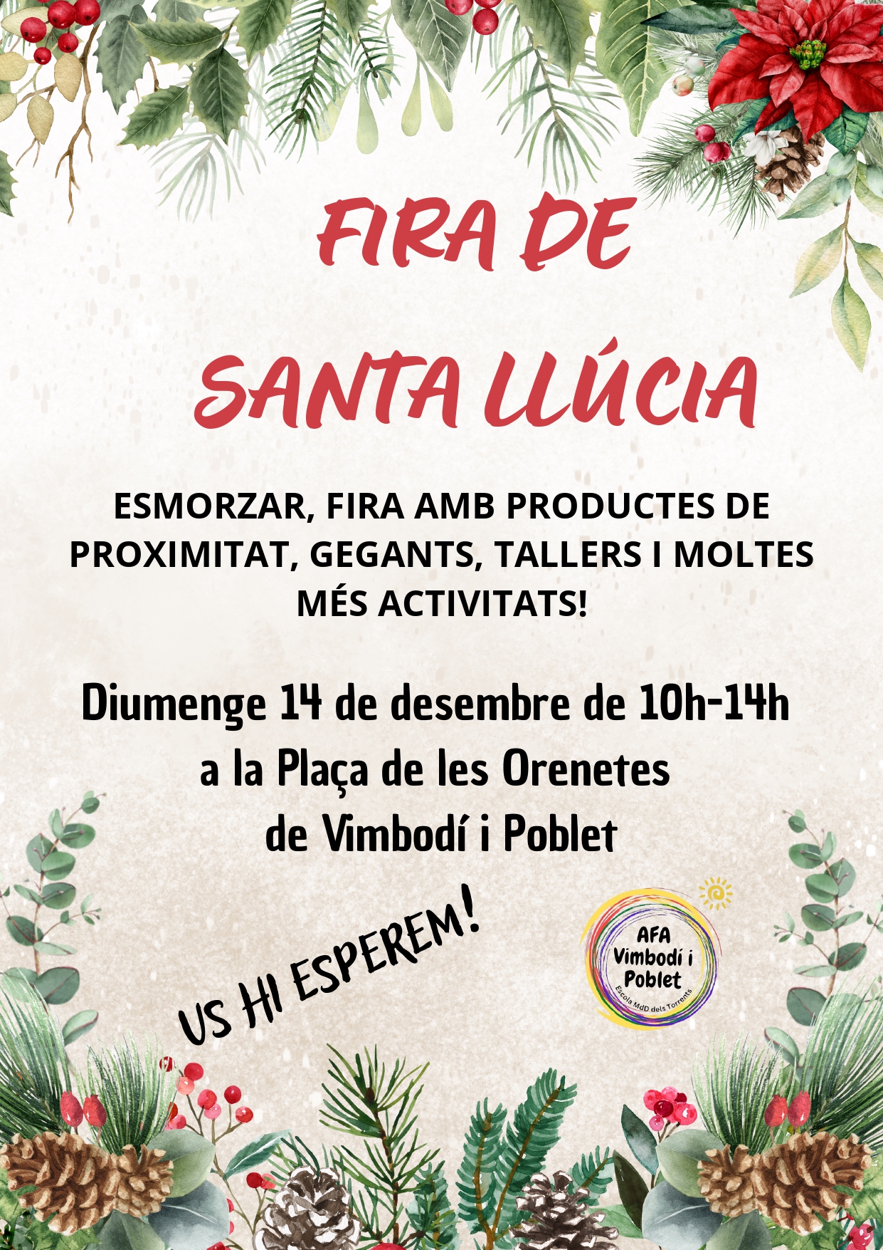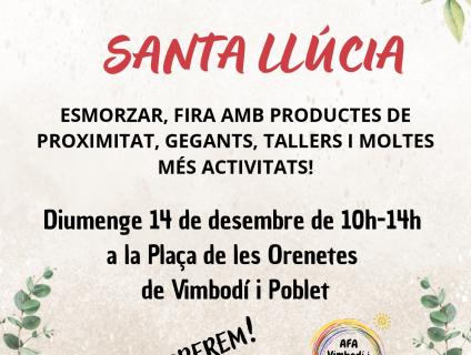 El pròxim 14 de desembre de 10h a 14h a la plaça de les Orenetes hi haurà la tradicional fira de Santa Llúcia organitzada per l'AFA amb la col·laboració de l'ajuntament.