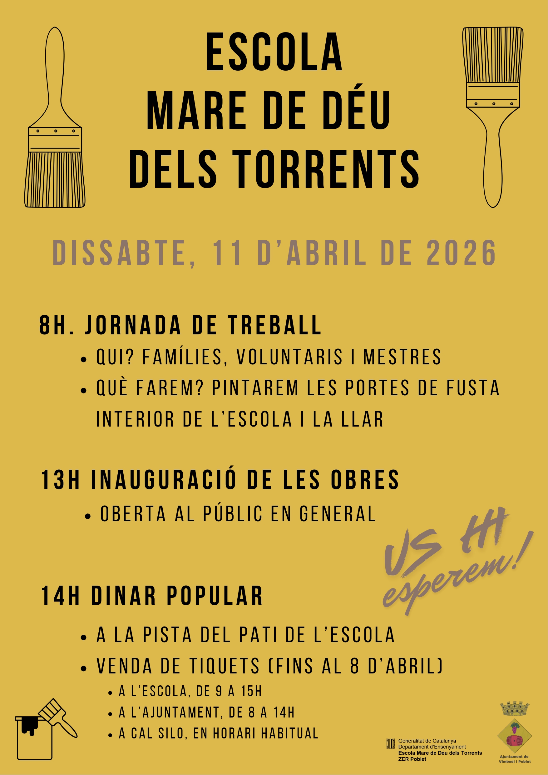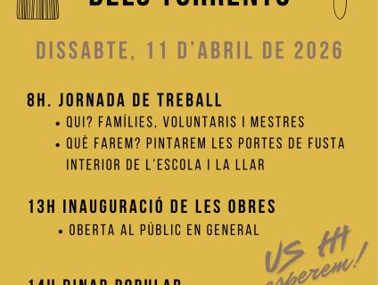 L'Escola Mare de Déu dels Torrents us convida el proper 11 d'abril a gaudir d'una jornada molt especial amb motiu de les obres d'adequació de l'escola.