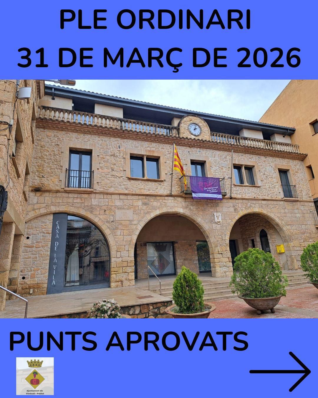 El passat dimarts 31 de març es va celebrar el primer ple ordinari de 2026, en què es van tractar diversos assumptes rellevants per al present i futur del municipi.