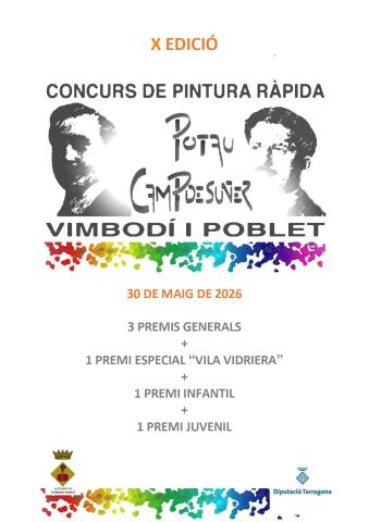 El pròxim dissabte 30 de maig de 2026, Vimbodí i Poblet es transformarà en un gran escenari artístic a l’aire lliure amb motiu de la X edició del Concurs de Pintura Ràpida. Organitzat per l’Ajuntament, aquest esdeveniment, ja consolidat al calendari cultural de la Conca de Barberà, convida artistes...