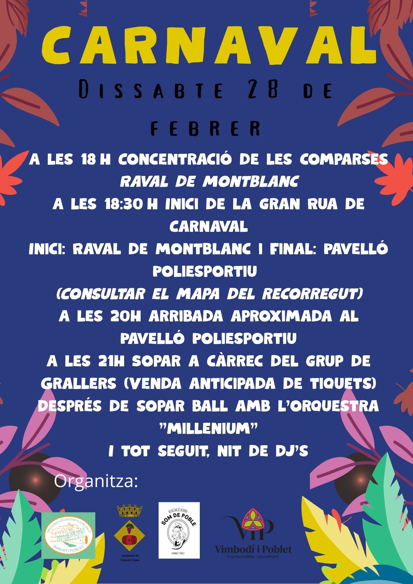 Vimbodí i Poblet tornarà a viure enguany una de les festes més esperades amb el retorn de la rua de Carnaval, que tindrà lloc el dissabte 28 de febrer de 2026.